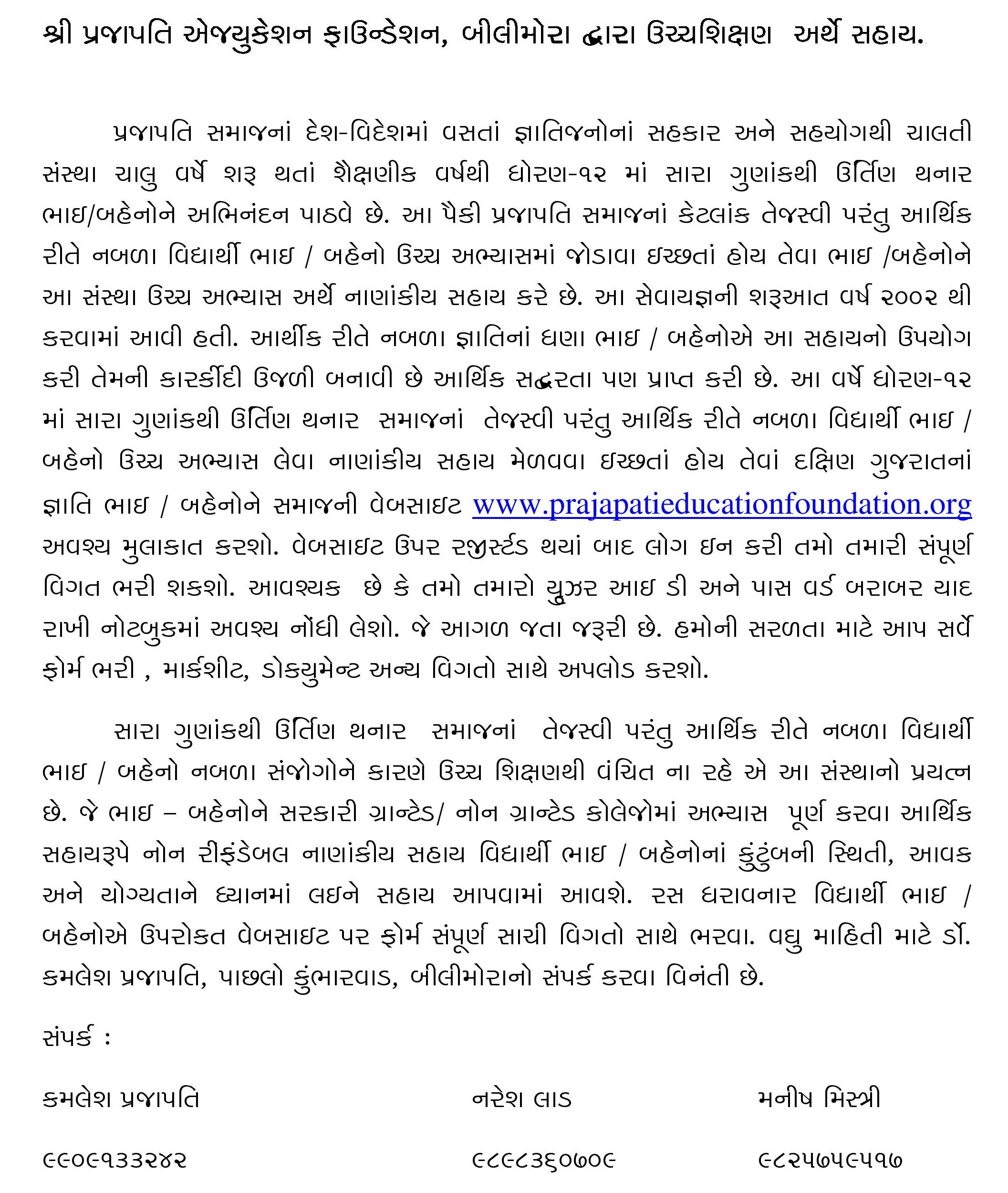 An appeal from Shri Lad Samaj Seva Trust, Ahmedabad for the funds to build Educational Housing facilities for South Gujarat Students. For more information please click below links: